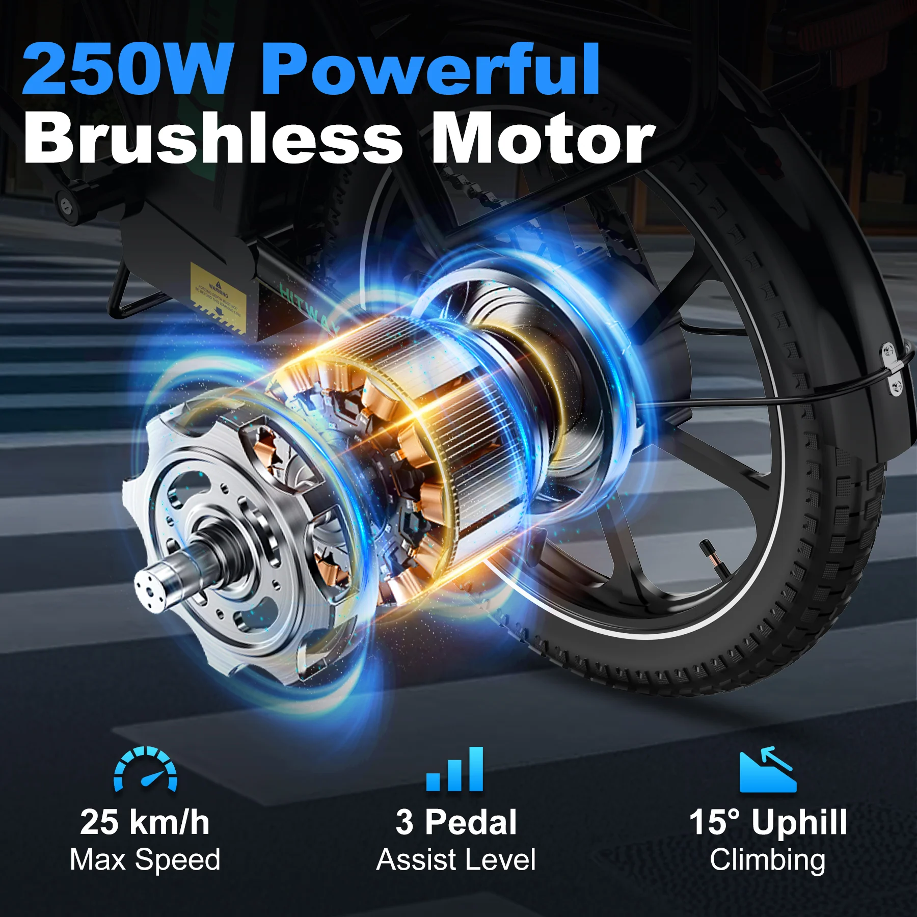 Ride with confidence in any environment. The HITWAY BK5SL features front and rear disc brakes combined with an intelligent electronic brake system, immediately cutting power when braking for better control and shorter stopping distances. For night riding, the bright LED headlight and reflective wheel strips ensure excellent visibility, even in low-light conditions.